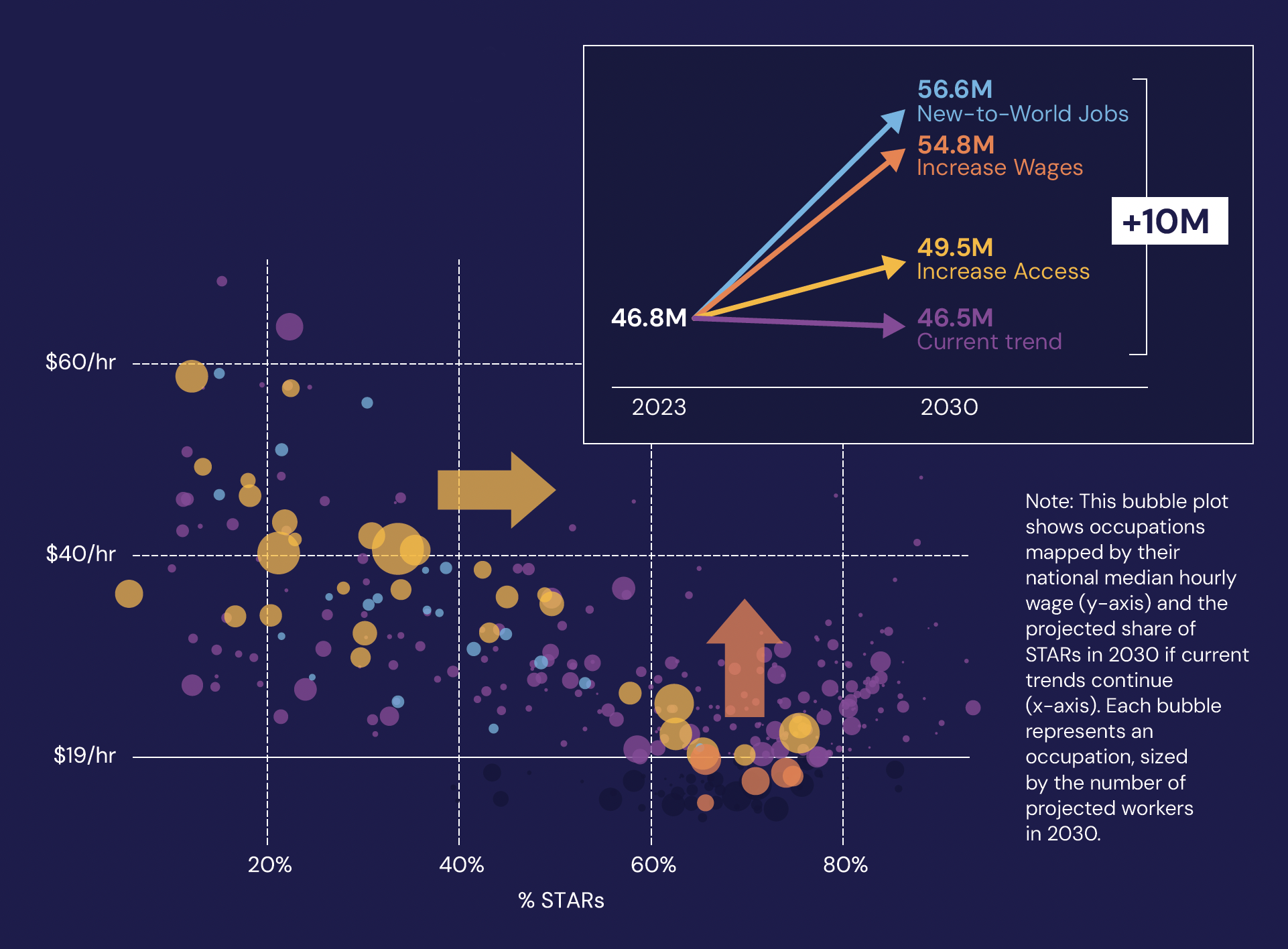 The STAR Mobility Compass is a future-oriented framework for improving mobility at scale. It shows how three interventions can collectively move 10 million STARs into better-paying jobs by 2030.